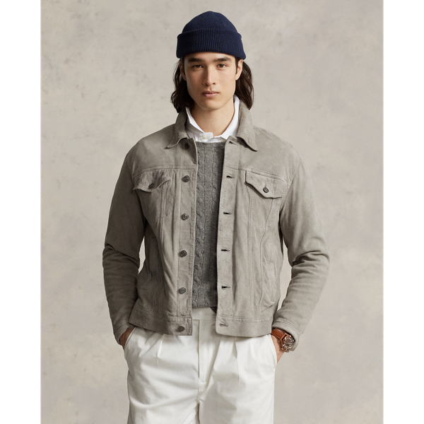 Mens Polo Ralph Lauren grey Suede Trucker Jacket Harrods GT Very well made.
