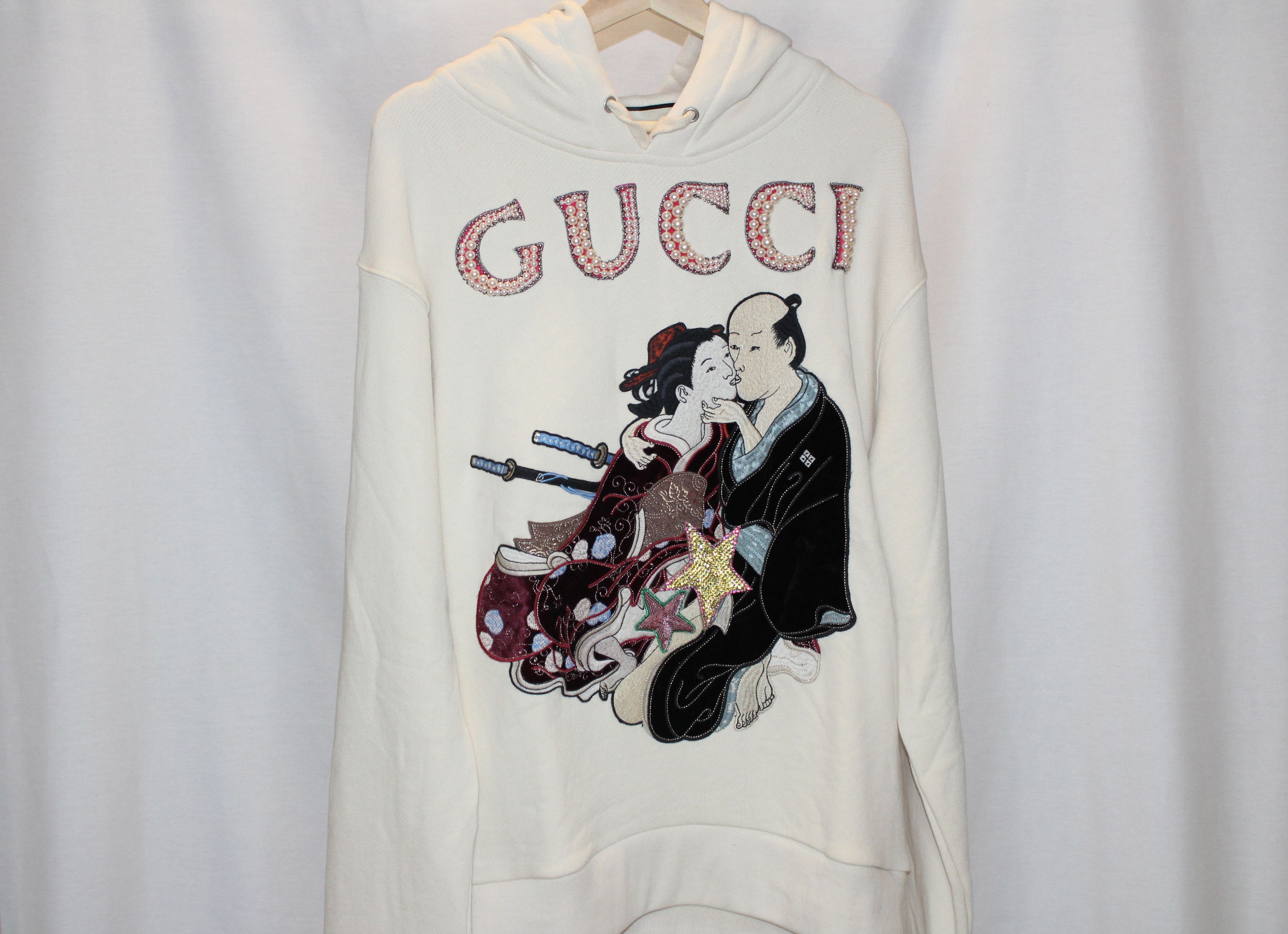 GUCCI Shunga pearl embroidered geisha hoodie size M Very well made.