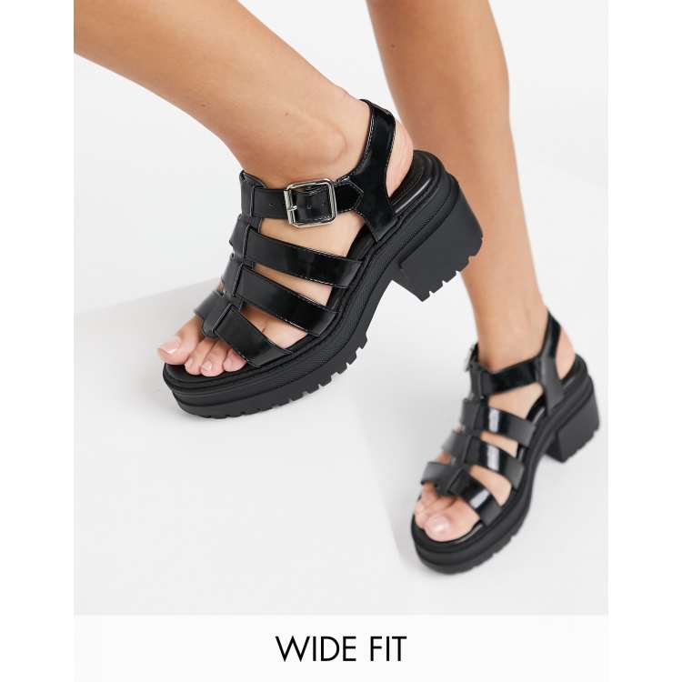 ASOS DESIGN Wide Fit Hugo chunky mid heeled sandals in black ASOS Very well made.
