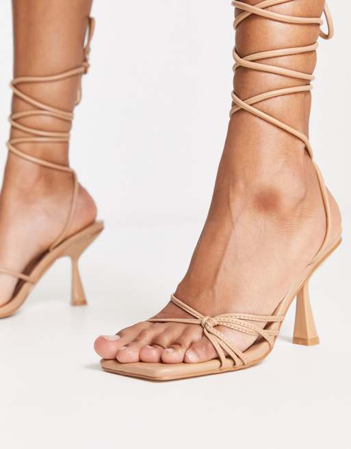 Simmi London Alamo mid heel tie up sandals in beige Very well made.