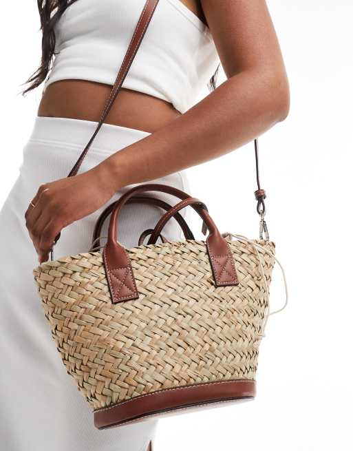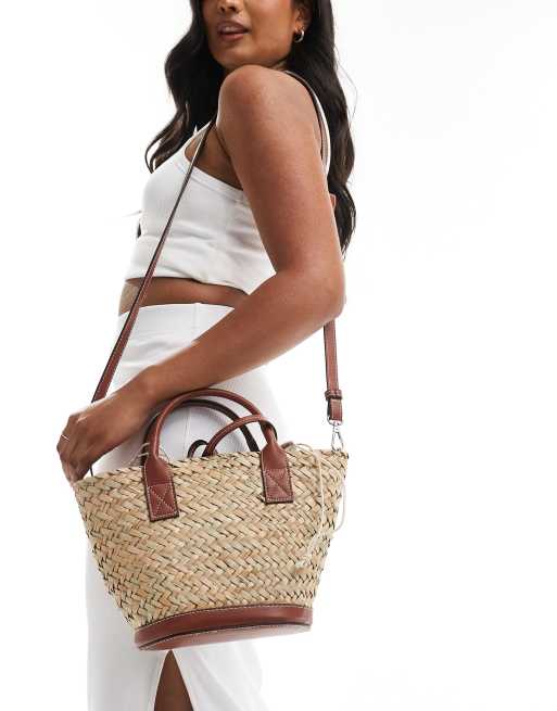 Mango Borsa a tracolla a secchiello intrecciata marrone Very well made.